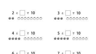 小学一年生 足して10になる数[ことば]【1】|小学1年生 算数 【無料で印刷できる練習問題!】未就学~小学校1年生の向け『足して答えが「10」になる数』の無料練習問題プリントです。たくさんの問題がありますので、繰り返して練習し計算に慣れましょう。 小学一年生幼児