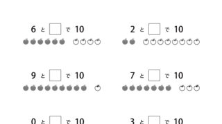 小学一年生 足して10になる数[ことば]【4】|小学1年生 算数 【無料で印刷できる練習問題!】未就学~小学校1年生の向け『足して答えが「10」になる数』の無料練習問題プリントです。たくさんの問題がありますので、繰り返して練習し計算に慣れましょう。 小学一年生幼児