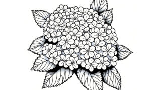 かっこいい大人の塗り絵 6月の塗り絵『紫陽花の静かな輝き』【大人の塗り絵-図柄の無料ダウンロード】- 印刷・商用利用可