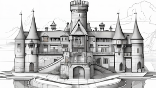 塗り絵 建物・風景の塗り絵『静寂の城館』【大人の塗り絵 – 図柄の無料ダウンロード】- 印刷・商用利用可