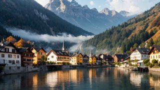かっこいい大人の塗り絵 ヨーロッパの風景の塗り絵『アルパイン – 山間の村』【大人の塗り絵-図柄の無料ダウンロード】- 印刷・商用利用可