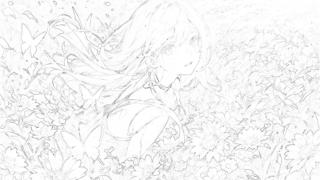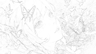 かわいい大人の塗り絵 『蝶と少女』かわいい大人の塗り絵【無料】- 花に囲まれた秘密
