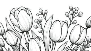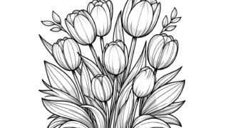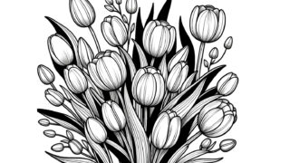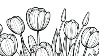 【素敵なチューリップの塗り絵】無料でダウンロード&印刷可能!無料で使える大人の塗り絵です。リラクゼーションに最適なアート活動を始めましょう。心を癒やし創造性を刺激する塗り絵で、日常の忙しさから解放されるひと時を。