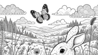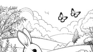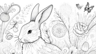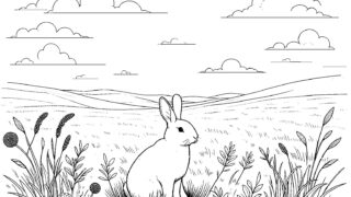 かっこいい大人の塗り絵 ウサギの塗り絵『野原の優雅な午後』【大人の塗り絵-図柄の無料ダウンロード】- 印刷・商用利用可