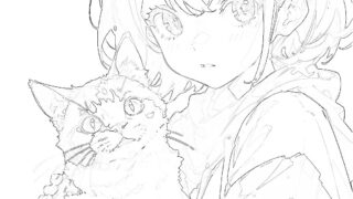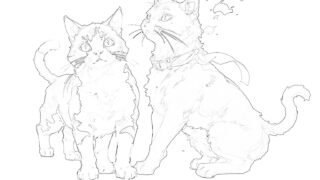 かわいい塗り絵 おしゃれな猫の塗り絵『黒と白の猫』【大人の塗り絵-図柄の無料ダウンロード】- 印刷・商用利用可