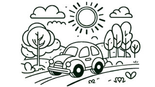 塗り絵 くるまの塗り絵『田舎道のドライブ』【子供向け図柄の無料ダウンロード】- 印刷・商用利用可 無料でダウンロード&印刷可能!無料で使えるくるまの塗り絵です。大人も子供も楽しめる、リラクゼーションに最適なアート活動を始めましょう。心を癒やし創造性を刺激する塗り絵で、日常の忙しさから解放されるひと時を。 塗り絵子供の塗り絵