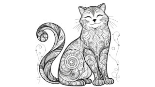 かっこいい大人の塗り絵 猫の塗り絵『線の迷宮』【大人の塗り絵-図柄の無料ダウンロード】- 印刷・商用利用可
