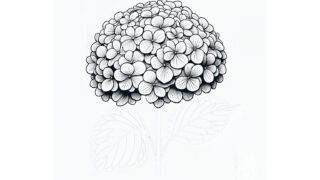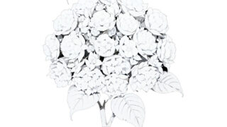紫陽花の塗り絵『紫陽花のスケッチ』【大人の塗り絵-図柄の無料ダウンロード】- 印刷・商用利用可