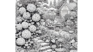 紫陽花の塗り絵『自然美』【大人の塗り絵-図柄の無料ダウンロード】- 印刷・商用利用可